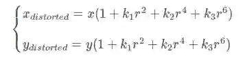 实际情况中我们常用r=0处的泰勒级数展开的前几项来近似描述径向畸变,矫正径向畸变前后的坐标关系为: