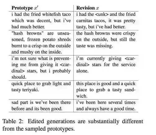 可以看到,此时的 edit vector 不再是 sentiment words,而是一种 semantic operation。如果让 edit vector 作为一种隐变量,也遵循某种分布,那么同样的 edit vector 应该符合同一种 edit operation,并且对于句子的改写是一种微小的可控的操作。