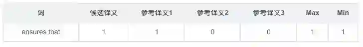 然后将每个词的Min值相加,将候选译文每个词出现的次数相加,然后两值相除即得