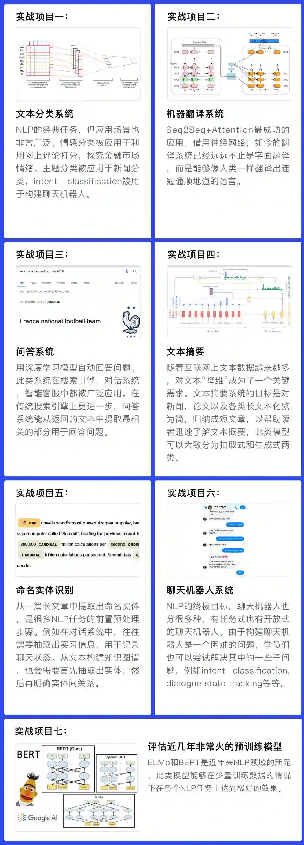 基于此【NLP就业小班 第二期】将由2位资深讲师手把手带大家做出7个超高含金量的项目!