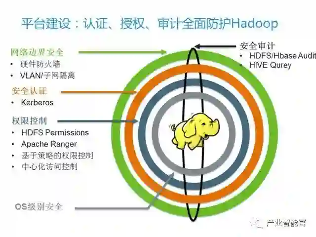 l 通过这四层,我们保证进来的用户都是通过安全认证的,而且是有权限去操作这个集群的。但用户操作是否合理、到底访问了哪些数据,或者说有没有尝试访问敏感数据,这就要交给审计来做了,安全审计对数据安全也是至关重要的。OS级别的安全和网络安全一般都是统一的,这里不做展开。