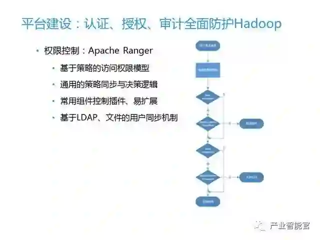 权限控制我们用的是Hadoop系统当中的安全管理框架Apache Ranger来实现,它是一种定义和管理安全策略的集中式组件,里面内置了一些通用的策略防护和策略模型,这些安全策略在Hadoop支持的组件上会被强制执行。