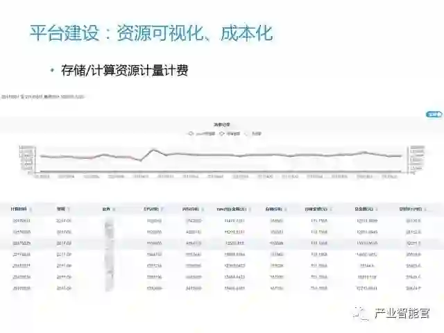 在这个平台上我们直观给出每个业务系的CPU、内存、存储的占用情况、使用的时长,以及转换的成本,同时也可以通过消费曲线观察异常消费,进行成本优化。