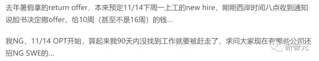 还有刚毕业的拿到offer还没入职就被撤offer的。不过也拿到了10周工资的补偿,这下也要另找东家了,很急。