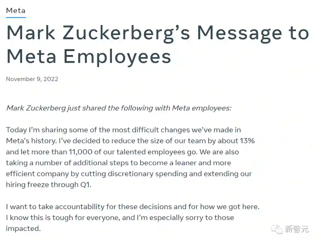 今早,小扎在Meta内部员工的备忘录中发布了裁员的消息。