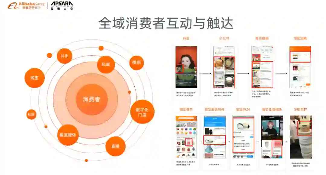 从业务角度来看,现在的全域消费者都在做什么?消费者可以在抖音、小红书或者淘宝店铺搜索一件商品,与此同时消费者也可以从其他网站继续浏览该商品,并且有可能从多个渠道来购买该商品,这就形成了一个网状型的路径。这就存在一个很大的问题,就是按照这个路径,数据复杂度会变得非常高,在没有大数据或者很多数据量的情况下,很难回答消费者到底浏览了此商品多少次,最后在哪购买的。