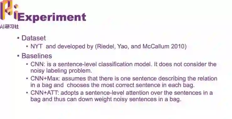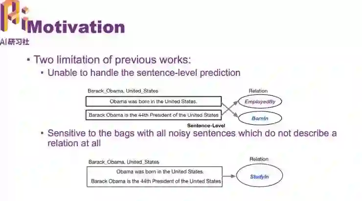 我们提到一个新的模型,在有噪声的情况下也能句子级别的关系分类,而不仅仅是 bags 级别的关系预测。