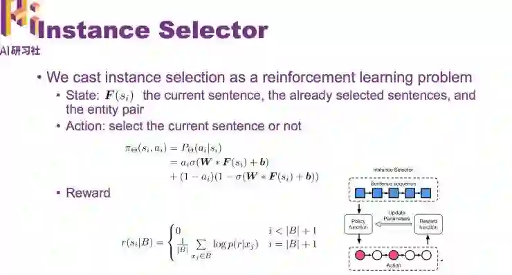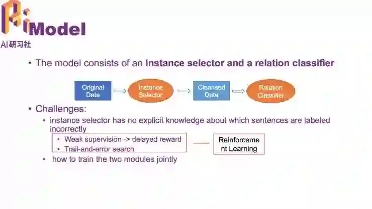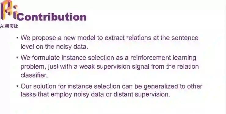 首先是第一个工作:利用增强学习从噪声数据中进行关系抽取 (Reinforcement Learning for Relation Classification from Noisy Data)