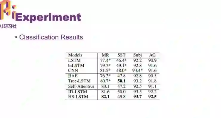 在这个工作中,我们学习了跟任务相关的句子结构,基于句子机构得到了不同的句子表示,并且得到个更好的文本分类方法。我们提出两种不同的表示方法,ID-LSTM 和 HS-LSTM。这两个表示也得到了很好的分类结果,得到了非常有意思的和任务相关的表示 。