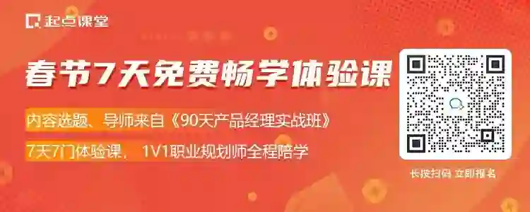 由腾讯课堂&起点课堂联合打造《90天产品经理实战班》,经过人人都是产品经理社区10年沉淀,课研部门和大厂导师几十次精心打磨,经受过市场多次严苛检验,专为转岗/入行的产品新人打造的一门能力进阶课。