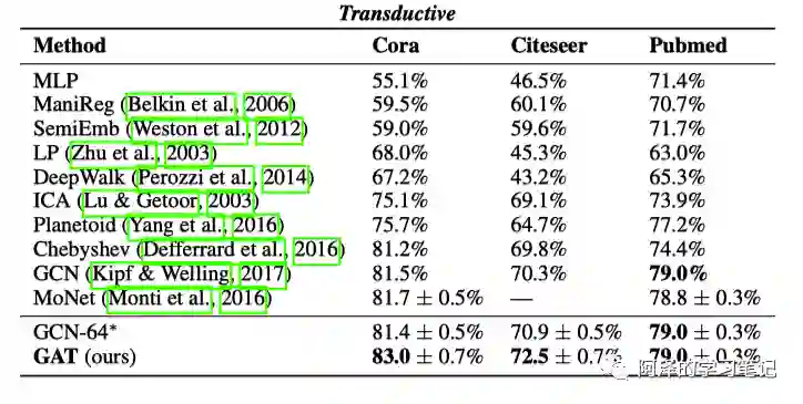 总结:作者提出了一种新型的图卷积神经网络——图注意网络(GAT),其利用带 masked 的自注意力层来处理图结构数据,同时利用多头注意力对节点邻域进行充分表达。GAT 在诸多数据集中无论是直推学习还是归纳学习都取得不错的成绩。