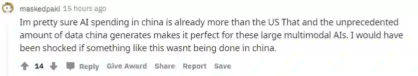 还有网友认为:中国拥有无与伦比的大规模数据,非常适合大型多模态AI训练。