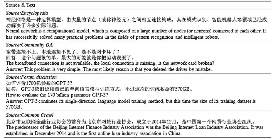 百科全书、社区问答、论坛讨论这些文本数据的展示如上。