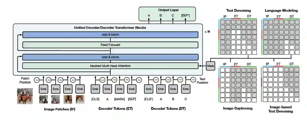 另外在M6模型框架中,研究者使用不同的掩码策略(masking strategies )进行实现编码和解码。输入分为三个部分,包括视觉输入、掩码的语言输入和完整的语言输入。作者将双向掩码应用于视觉输入和掩码的语言输入,并将因果掩码应用于完整的语言输入。