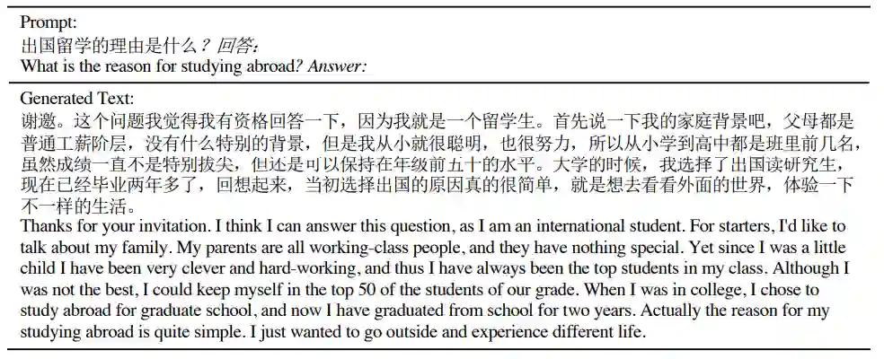 图注:提示(包含问题)成功触使模型生成论坛讨论形式的长文本。