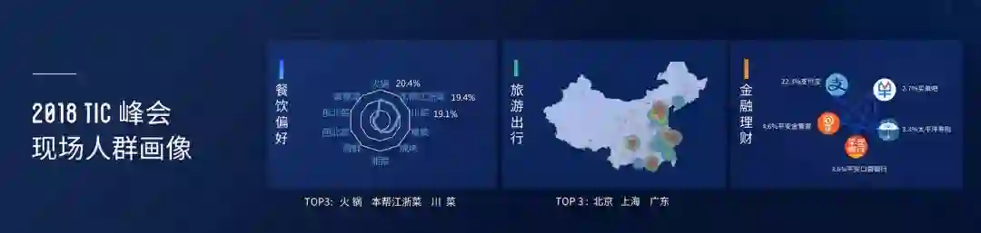 大会现场有一个非常有趣的环节:MobData展示了现场人群实时分析的数字画像,当企业用户人群的喜好、特点被数据化时,也意味企业的分析、管理、运营、优化等都具备了决策依据。