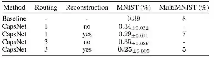 也就是这篇论文仅仅是为了实现一个简陋的,能用的基于 capsule 的模型,原则上无论结果多么差都可以接受。而结果还是基本令人满意的,并且动态路由算法似乎能提升算法性能。作者并没有精心设计高效可扩展的算法,而是仅仅展示 capsule 是能用的。