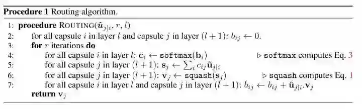 的权重较大,就好像底层的某个 capsule 的输出只贡献给上面的某个 capsule)。
