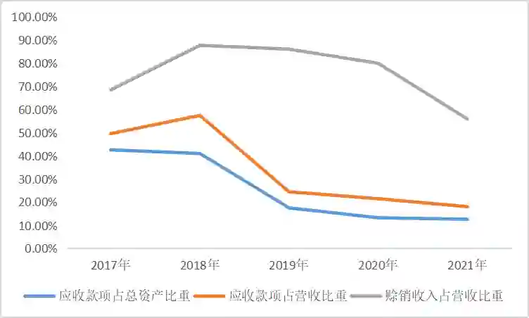 根据财报信息,2021年公司的应收账款和应收票据为18.52亿元,占总资产的比重为12.5%,占总营收的比重为18.2%,均较去年同期有所下滑。与此同时,我们简单测算了2022年公司的当期赊销占收入的比例为56%,也较2021年有明显下滑;但同时报告期内公司经营活动产生的现金流净额为-1.92 亿元,同比下降 127.1%。