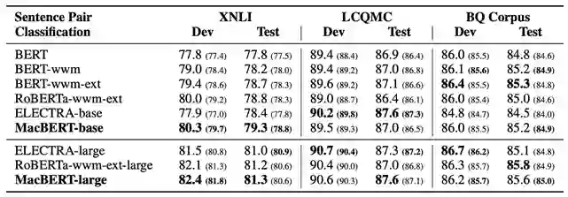 句对文本分类:XNLI[13],LCQMC[14],BQ Corpus[15]
