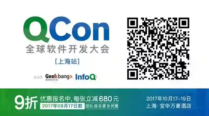 更多关于精彩技术专题请关注 QCon 全球软件开发大会,QCon 上海站目前 8 折优惠报名中,2017 年 09 月 17 日前,立减 680 元,团购报名更多优惠~点击「 阅读原文 」跟技术大咖零距离。欲购票或咨询问题可联系购票经理 Hanna ,电话/微信:15110019061。