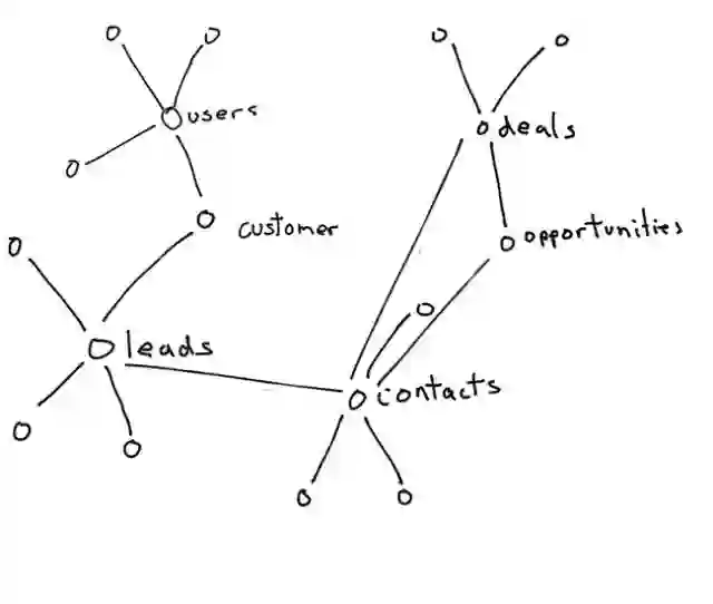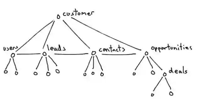 你会发现,现在的关系图与 Salesforce 的关系图有一个很大的不同点。现在的关系图中不止一个中心点,而是三个:分类(catalog)、用户(user)和订单(order)。