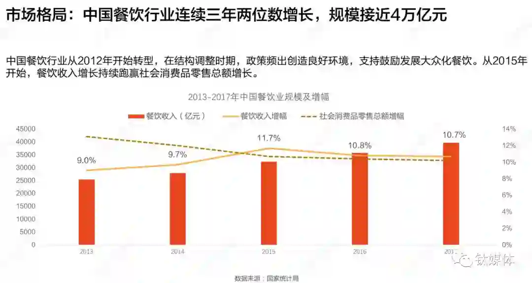 行业数据显示,在国内社会消费品零售总额中,线上电商占比仅有15%左右,85%的消费仍旧在线下。而在线下消费中,本地生活服务占据着最重要的地位,其中餐饮消费则最为高频最为庞大。数据显示,2017年,中国仅餐饮消费的交易额就接近4万亿。