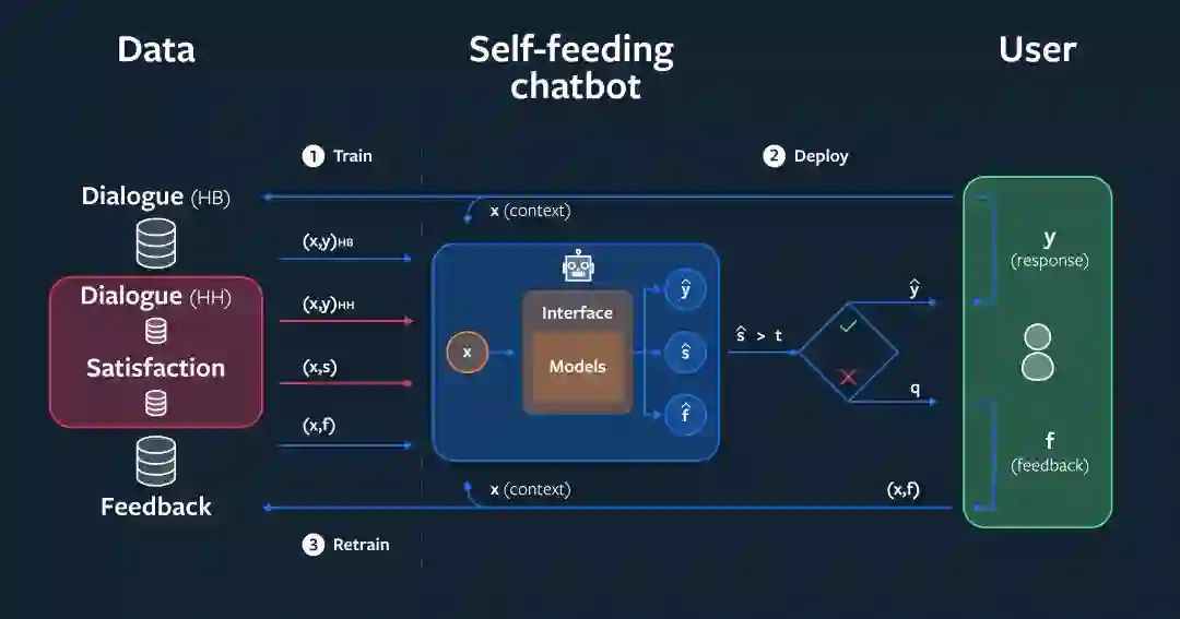 自助式聊天机器人会评估它的对话伙伴对它在互动过程中做出的反应的满意度。当对话智能体认为自己犯了错误时,它可以要求反馈。学习预测这样的反馈有助于模型随着时间的推移而改进。当它相信自己没有犯错时,可以使用标准的监督学习技术来代替。最终,我们发现,无论传统监督的数量多少,通过与自助式聊天机器人的对话学习,都能显著提高性能。当初始训练集很小时,这种改进最为显著:在这种情况下,我们看到对话任务的正确率提高了 9.4 个百分点,相比基线提高了 31%。