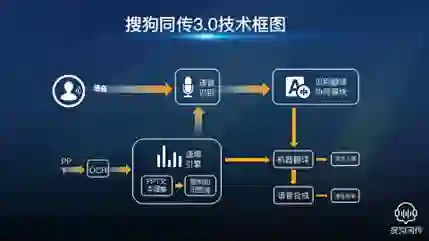 相比之前的版本,搜狗同传3.0 有这样三个特点:一是更自然,以往同传是单纯的语音识别,而搜狗同传 3.0 会模拟人工同传的工作方式,增加视觉和大脑扩散知识点的功能,形成一套全方位的感知系统;二是更专业,之前同传的模型是通用的,但搜狗同传 3.0 形成了实时专属的定制加强能力,能够实时捕捉 PPT 内容,补充演讲专业领域知识,并针对每一个演讲进行模型定制,提升同传效果;三是更智能,以往模型训练需要一个被动学习的过程,而现在搜狗同传 3.0 可以自动学习 PPT 内容,自动捕捉海量词汇,确保同传质量。
