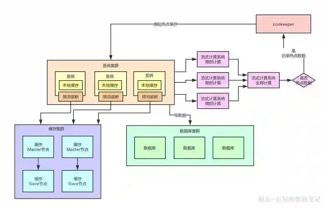 一旦在实时数据访问次数统计的过程中,比如发现 1 秒之内,某条数据突然访问次数超过了 1000,就直接立马把这条数据判定为是热点数据,可以将这个发现出来的热点数据写入比如 Zookeeper 中。