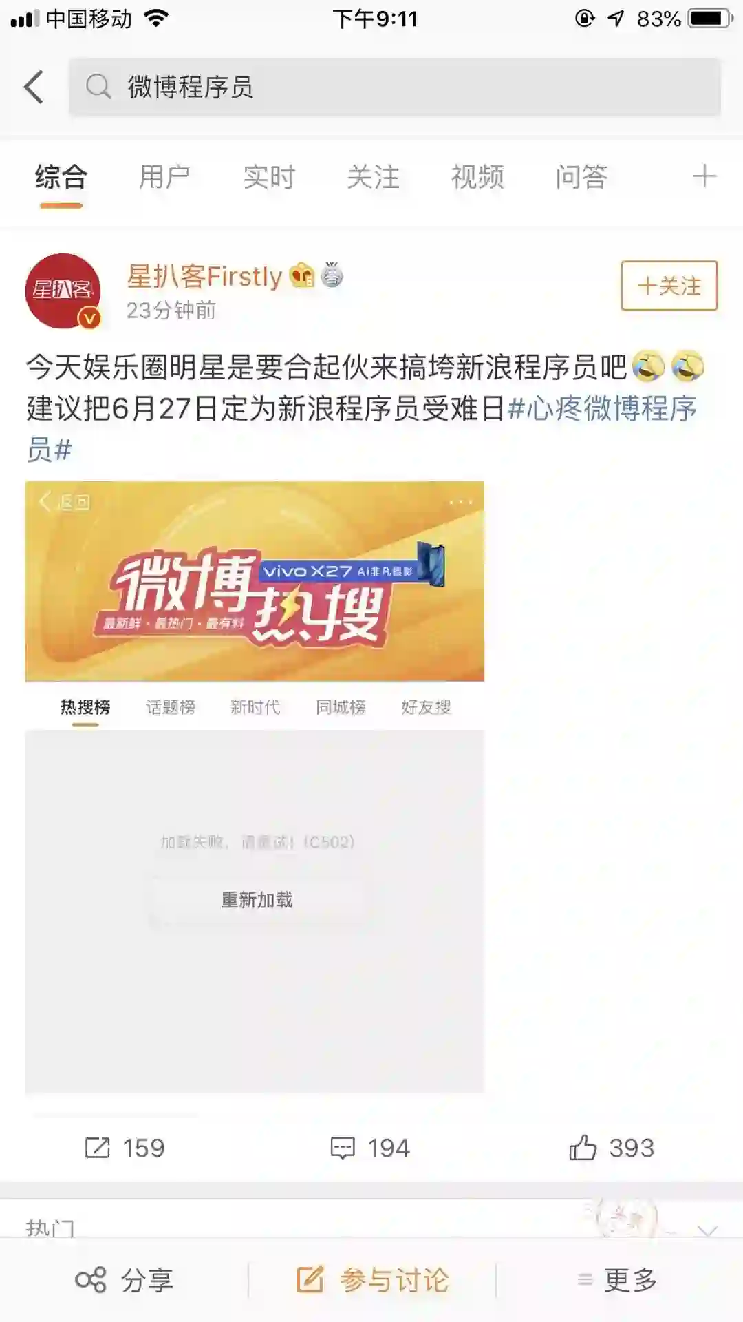 6 月 27 日,微博再次宕机,因为一连出现 3 个热点新闻:双宋离婚、宝强母亲去世、李晨范冰冰分手。广大网友可能更多关注的是新闻本身,纷纷留言评论发表自己看法。