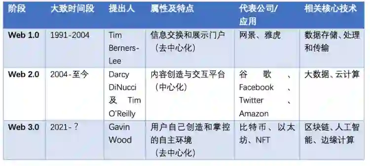 关于从Web1.-Web 3的变迁和概念特点,我们也为大家总结整理了一个表格。