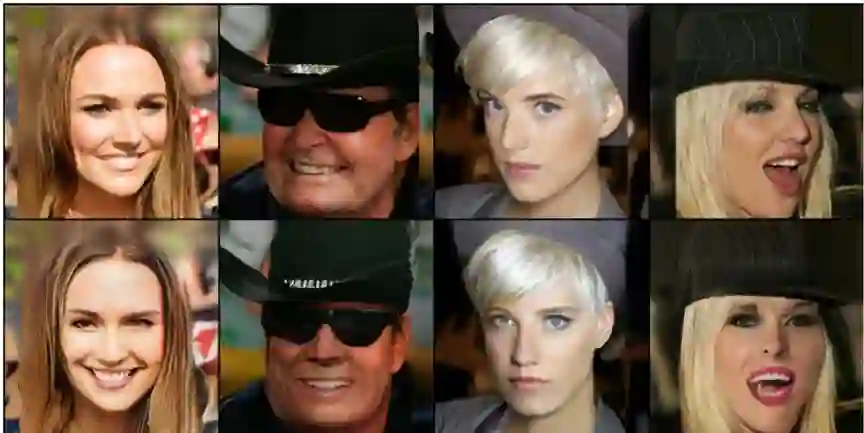 上图是在CelebA数据库的HQ子集上的可视化结果,第一行为输入图像,第二行为通过HF-PIM模型进行人脸正面化后的结果。HF-PIM是首个支持生成256*256可视化结果的模型。