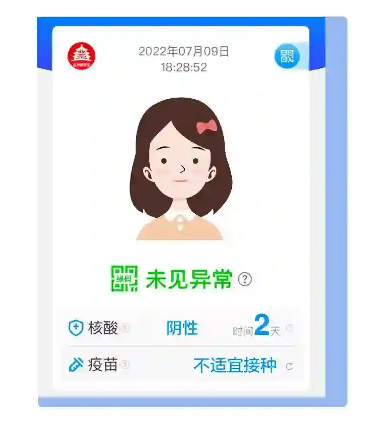 【北京健康宝新增“不适宜接种”标识】北京健康宝“疫苗”接种情况增加了新标识。除了常见的“完成基础免疫”“完成加强免疫”等标识外,新增了“不适宜接种”标识。但是“不适宜接种”的标记是有时间期限的,通常只能暂缓接种几天至几个月。(北京日报)