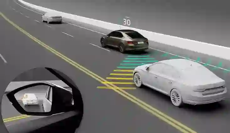 盲点检测系统,通过车辆周围排布的防撞雷达、多普勒雷达、红外雷达等传感器、盲点探测器等设施。用于监测自车后侧方盲区内其他汽车的系统,用以提醒驾驶员后侧方存在碰撞风险,请勿变道。该功能的实现依赖于后侧向毫米波雷达对障碍物的检测能力,并以此为根据对驾驶员进行预警。也用于侧向辅助。