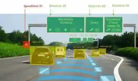 这个技术让车辆能够自动识别交通信号或者标志牌,比如说最高限速,或者停车等标示。