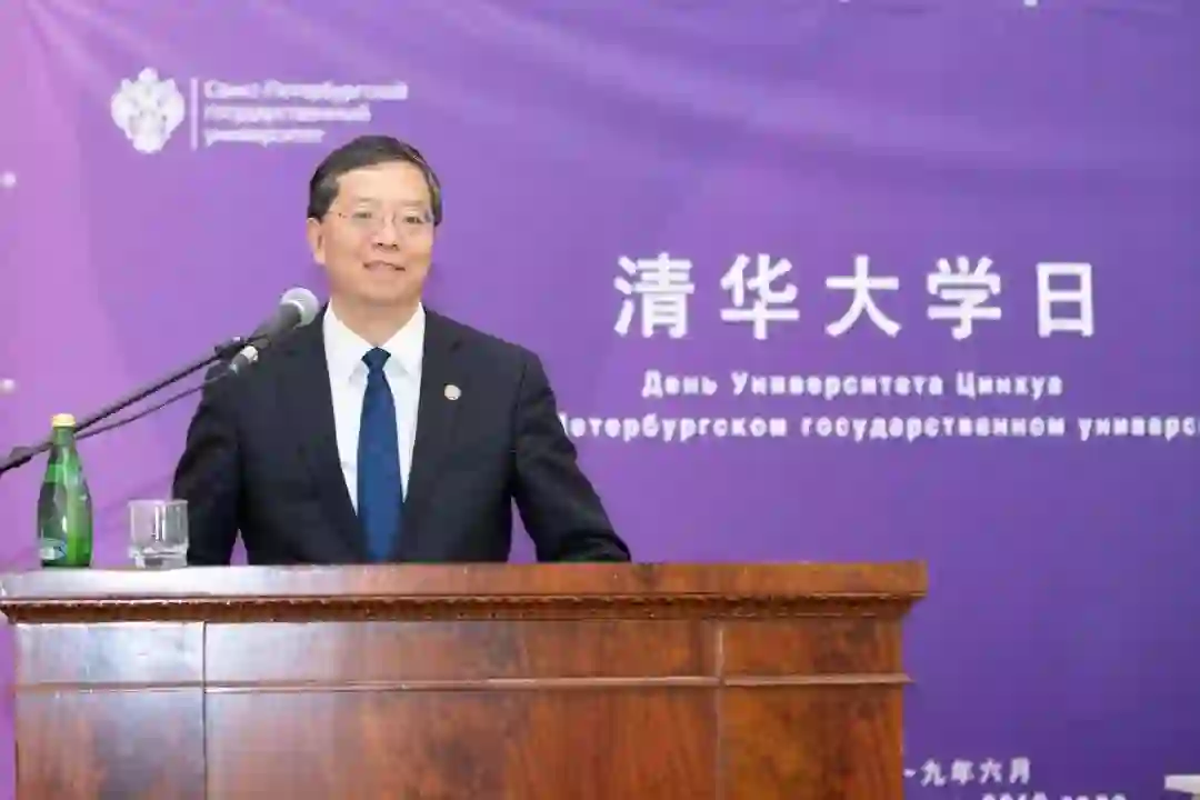 我相信,张礼先生这份对于学术和学生的爱与他早期在圣彼得堡国立大学的学习经历是有关系的。正是因为有一批像张礼先生这样的人,清华大学与圣彼得堡国立大学建立了深厚的友谊。今年恰逢中俄建交70周年,我们两位共同的校友,习近平主席和普京总统,在新的历史起点上共话友谊、规划蓝图,开启了中俄全面战略协作伙伴关系新征程。前天,在两国元首的见证下,清华大学与圣彼得堡国立大学交换了共建清华大学俄罗斯研究院的协议。希望我们两校以此为契机,进一步加强在各个领域的科研合作,着力推动学者学生之间的交流,为青年成长提供平台,为青年发展创造机会,为中俄两国的未来、为人类的未来培养更多有责任心和使命感的青年。今天,我与圣彼得堡国立大学的同事们进行了很好的互动和交流。当然,我们现在的沟通还需要翻译的帮助。我知道俄语和汉语都是世界上很难学的语言。如果某一天,我们能够用俄语或汉语直接交流,我想,我们的合作一定会达到一个新的高度。