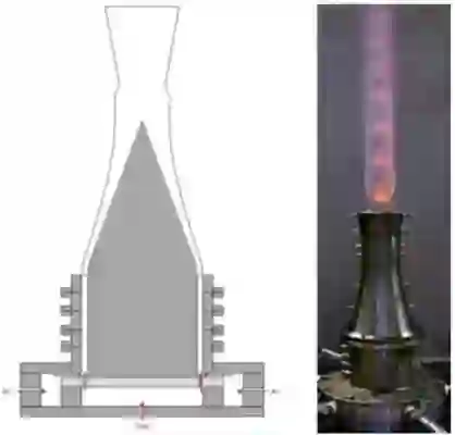 与PDE和RDE不同,驻定爆震发动机是一类使爆震波“停”下来的发动机。按照爆震波类型又可以分为脉冲正爆震发动机(Pulse Normal Detonation Engine,简称PNDE)和斜爆震发动机(Oblique Detonation Engine,简称ODE)[3]。前者通过改变来流条件(主要是速度)实现爆震波在燃烧室内的驻定。由于正爆震发动机是本世纪初才提出的全新概念,相关研究较少。比较代表性的工作是,2006年俄罗斯科学院在一个热射式风洞中开展的超声速脉冲爆震(SPDRE)的研究(图35),燃料为氢气、氧化剂为空气[12]。这项工作本质上是将高超声速来流压缩到中等超声速,然后通过控制预混气当量比实现爆震速度在来流速度左右脉动。此外,西北工业大学也进行了PNDWE相关数值模拟研究[3]。