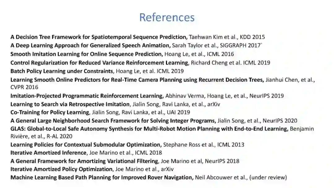 【导读】Imitation Learning(模仿学习)机器学习新的研究热点之一,因其能很好的解决强化学习中的多步决策(sequential decision)问题,近段时间得到了广泛关注。那么模仿学习近期的前沿进展如何呢,来自加州理工大学的Yisong Yue在DAI'20 Workshop,做了名为《Towards Real-World Imitation Learning: Animation, Sports Analytics, Robotics, and More讲座。新鲜出炉的PPT,一起来看看吧。