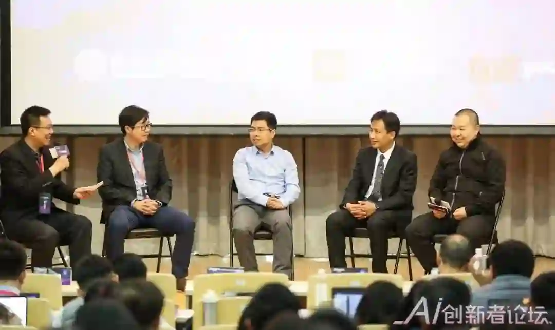 在接下来的《AI技术与2019》的讨论环节,清华校友、iClick联合创始人兼CTO 唐健、360集团副总裁、人工智能研究院院长、新加坡国立大学副教授颜水成、清华大学电子系教授汪玉、得意音通总经理、1024学院/iTechClub发起人倪鸣就人工智能技术的挑战和发展进行了激烈的思想碰撞。