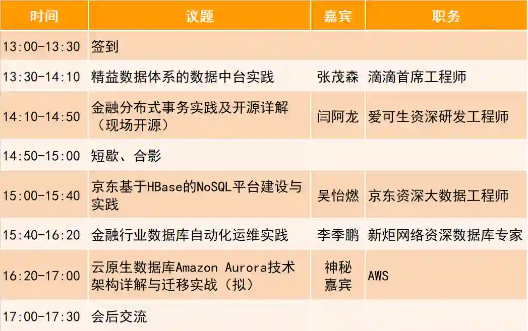 2019年9月21日,上海:dbaplus社群将举办Fintech上海沙龙,邀请到多位深耕金融科技的技术专家,一起从不同视角探讨金融级数据库与运维实践,同样不容错过。