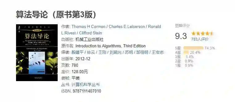 于是我问出版社要来《算法导论》的书摘看看,然后又去网上查了很多的资料,真的没想到《算法导论》这本书的评价那么好,而且书籍里涉及的内容非常的全面,在豆瓣上达到了9.3的高分。