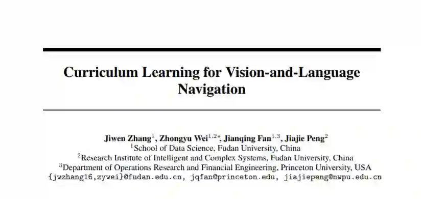 Curriculum Learning for Vision-and-Language Navigation 视觉语言导航的课程学习