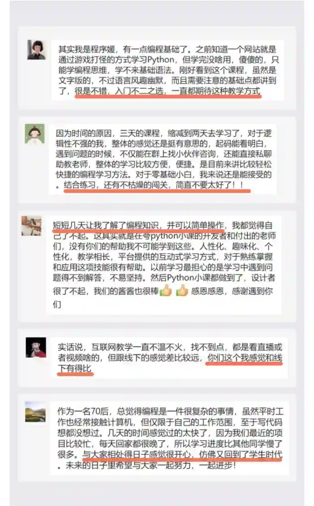 目前Python小课已经吸引了50万+从来没有接触过编程的小伙伴前来学习,大家都是从零开始,学习python,帮自己跨入新的台阶,提升竞争力。