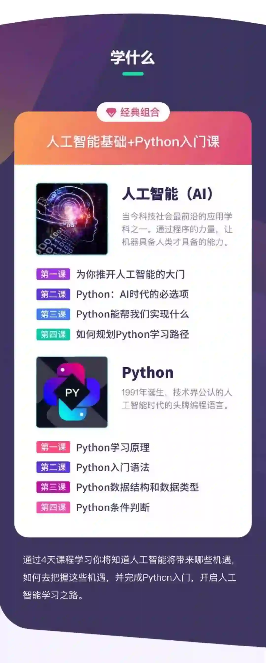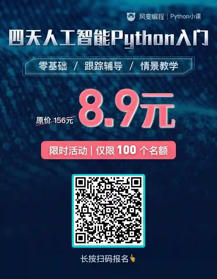 这次我与python小课(风变编程)合作了「四天人工智能Python入门」,为小伙伴们争取到100个限时优惠名额。