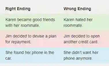 数据集的任务是,给定前4句话组成的一个小故事,在候选的两句话中选出更合适作为当前故事的结尾的那句——所以是一个二分类任务。并且因为这些故事是人为干预的,所以保证在涵盖标准答案的5句话中,不会有杂乱无关的信息,所有信息都是为核心故事服务的。来看一个例子: