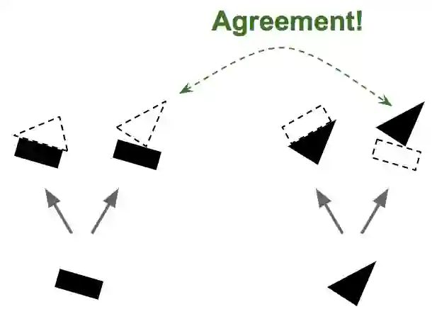 图5 按协议路由,第1步—基于存在的部分对象及其姿态去预测对象及其姿态,而后在预测结果之间寻求一致性。图像由AurélienGéron提供。
