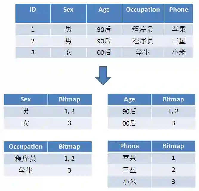 2. 让每一个标签存储包含此标签的所有用户ID,每一个标签都是一个独立的Bitmap。