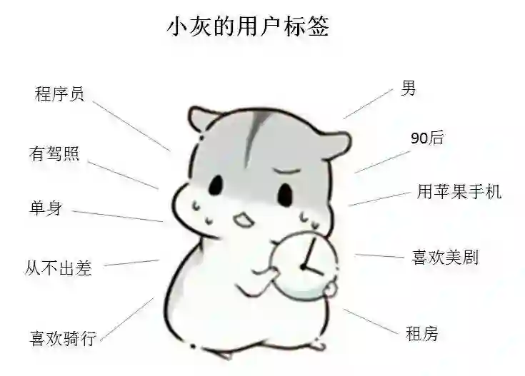 为满足用户标签的统计需求,小灰利用Mysql设计了如下的表结构,每一个维度的标签都对应着Mysql表的一列: