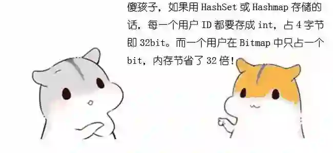 Bitmap不仅方便查询,还可以去除掉重复的整型数。